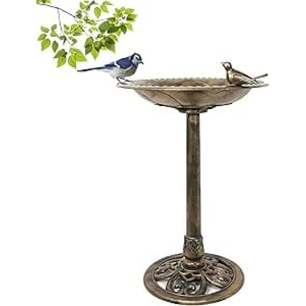 Attractive design: our bird bath is equipped with an antique style and hollow base that makes it lightweight and easy to move; turn your garden or yard into a bird oasis DURABLE AND WEATHERPROOF Made of high quality PP material and covered with resin coating, this bird is weatherproof and provides UV protection; it will not dent, break or break STURDY BASE Equipped with ground nails to keep it in place; Additionally, you can fill the base with gravel or stones for improved stability EASY TO ASSEMBLE Made with simple components that make it easy; the bowl is easy to attach by screwing onto the bottom while the bottom is hollow and convenient to fill with materials 100% SATISFACTION GUARANTEE:Quality and customer satisfaction are very important to us. Therefore, we strive to provide our customers with the highest possible quality. In addition, our products are backed by our 100% money back satisfaction guarantee, so you can buy with confidence › See more product details; Product description Bird Bath Antique Fountain for Outdoor & Garden Decoration | 68 cm Height | Bronze with Bird; Product description Bird Bath Antique Fountain for Outdoor & Garden Decoration | 68 cm Height | Bronze with Bird; Bird Bath Antique Fountain for Outdoor & Garden Decoration | 68 cm Height | Bronze with Bird