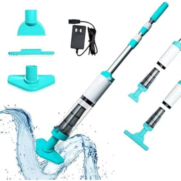 3 in 1 Rechargeable Pool Vacuum Cleaner, Adjustable Length Handheld Vacuum Cleaner, Cordless Electric Vacuum Cleaner for Spas, Hot Tubs, Small Pools - Running Time up to 90 Minutes, Cyan