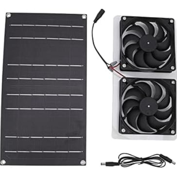 Widely used: IP67 solar greenhouse fan, completely dustproof and waterproof. Ideal solar fan for chicken coop, greenhouse, shed, pet house and window exhaust. What you get: 1 x solar panel - 1 x solar fan greenhouse - 1 x USB cable. Material: Made of high-quality monocrystalline silicon and ABS, our solar fan for outdoor use ensures a long service life. Function: This 100W solar fan for shed sucks out hot air and pushes the cool air in, effectively reducing the indoor temperature. Easy to use: This solar fan uses an improved motor that ensures strong performance and a low noise level of 34 decibels. › See more product details