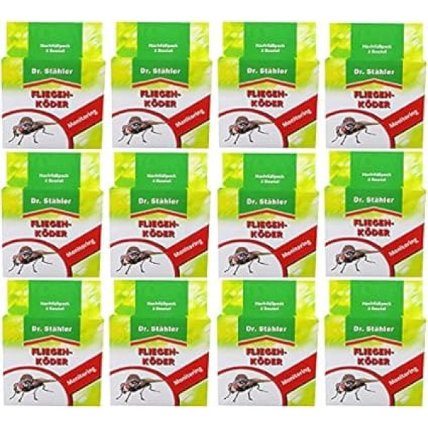 Refill pack for fly traps when used outdoors Outdoor use, Bauernhöfe, compost usable with clusters, garden, campsites Super value 12 x Dr. Stähler fly trap refill pack – 3 bags Includes free Oleander Hof Flyer › See more product details; Product description Description: With the Dr. Stähler fly trap refill pack allows you to fly traps for outdoor use Used Multiple Times. The refill pack consists of three bags – enough for three Auffüllungen of fly traps. It's sensitive to type or bags in a of the appropriate fly trap and add water. The Fly Trap offer an attracting flies of several months. Directions for use: For: Outdoor use, Bauernhöfe with compost piles,, Garden, Camping areas against flies, other insects Features: Environmentally friendly non-toxic protein solution 6 weeks Effective Activation of the attracting flies in 2 – 3 Days Effect for a number of months Instructions for use: The top of the fly trap opening, New Bag Insertion, warm water Einfüllenfüllen and the tin (ideally a warm place) hanging or standing outside. Ingredients: Protein and other natural substances. Over a period of use: All year round Pack size: 12 x 3 bags; Product description Description: With the Dr. Stähler fly trap refill pack allows you to fly traps for outdoor use Used Multiple Times. The refill pack consists of three bags – enough for three Auffüllungen of fly traps. It's sensitive to type or bags in a of the appropriate fly trap and add water. The Fly Trap offer an attracting flies of several months. Directions for use: For: Outdoor use, Bauernhöfe with compost piles,, Garden, Camping areas against flies, other insects Features: Environmentally friendly non-toxic protein solution 6 weeks Effective Activation of the attracting flies in 2 – 3 Days Effect for a number of months Instructions for use: The top of the fly trap opening, New Bag Insertion, warm water Einfüllenfüllen and the tin (ideally a warm place) hanging or standing outside. Ingredients: Protein and other natural substances. Over a period of use: All year round Pack size: 12 x 3 bags; Description: With the Dr. Stähler fly trap refill pack allows you to fly traps for outdoor use Used Multiple Times. The refill pack consists of three bags – enough for three Auffüllungen of fly traps. It's sensitive to type or bags in a of the appropriate fly trap and add water. The Fly Trap offer an attracting flies of several months. Directions for use: For: Outdoor use, Bauernhöfe with compost piles,, Garden, Camping areas against flies, other insects Features: Environmentally friendly non-toxic protein solution 6 weeks Effective Activation of the attracting flies in 2 – 3 Days Effect for a number of months Instructions for use: The top of the fly trap opening, New Bag Insertion, warm water Einfüllenfüllen and the tin (ideally a warm place) hanging or standing outside. Ingredients: Protein and other natural substances. Over a period of use: All year round Pack size: 12 x 3 bags