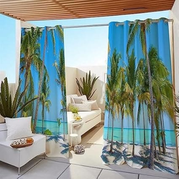 Outdoor Curtain Weatherproof, Opaque Waterproof 3D Outdoor Curtain with Eyelets, Privacy Screen, Sun Protection Curtain for Balcony, Patio, Porch, 1 Piece, Style 5, 264 x 160 cm