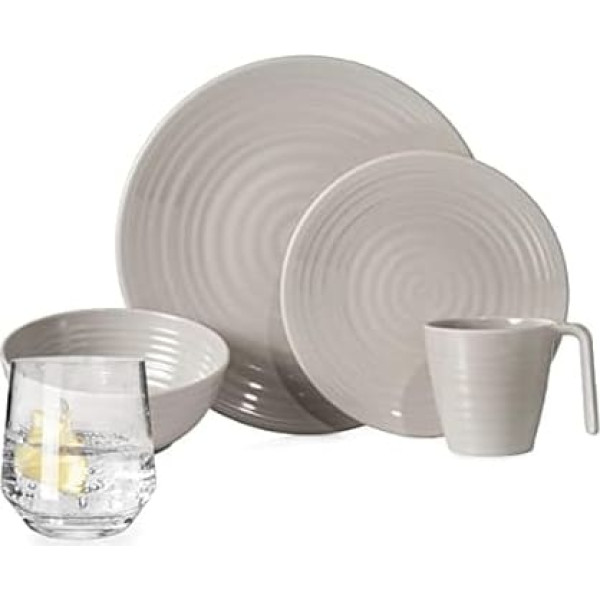 A must for every camper - saves weight and great handling - robust and elegant at the same time - for 4 people - harmony design Melamine - BPA free - almost unbreakable and scratch-resistant, also food-safe, odourless and neutral in taste and freezer-safe. 4 dinner plates / large plates - 4 cake plates / small plates - 4 cereal or soup bowls - 4 cups - 4 water glasses - dimensions see description Whether indoors or outdoors - as camping tableware on the campsite - at a festival or a trip with the motorhome. Suitable as a picnic set for relaxing hours for two or when barbecuing with the whole family Ideal for travelling - The harness is super light and shatterproof - fits in any luggage and saves weight - on the go in nature or on longer trips into the wilderness - always optimally equipped › See more product details