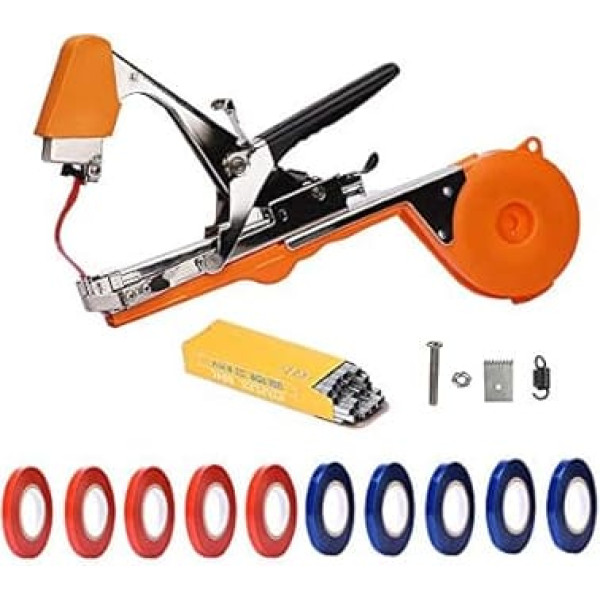 Time saving and labour saving: thanks to the tapetool you can quickly 3-4 times than manual work. It costs less time, so when the farmers are busy with planting, we can have more time to do the other things, such as sprinkling. And we can also increase the plant area because of its high efficiency. Easy to use: pull the strap first and then place the branch in the strap. Short press the binding machine to pack your plants efficiently. Works with high efficiency and would not harm the plant. The binding machine can be operated with one hand to complete the strapping process. With this binding machine, plants can be easily tied to sticks and lines with one hand. Ideal helper in the home and garden. This binding machine can be used to fix the grapes, tomatoes, cucumbers, peppers, flowers and the branches of the plant. Balcony and indoor plants, ornamental shrubs, raspberries, blackberries, etc. A great tool for greenhouses, gardens or summer cottages. Significantly improve your efficiency, save labor costs and save time. Package includes: 1 x binding machine, 1 x replacement tape cutting blade, 10 x tape rolls, 1 x box of staples. › See more product details; Product description Binding Pliers for Plants, Plant Binding Machine Tape Tongs Tapetool Hand Binding Machine for Vineyard Tomatoes Cucumbers Fruit Vegetables Agriculture Garden Binding Machine, Plant Tying How to use: 1. Hold down the handle and press it down with force when you hear a voice from \; Product description Binding Pliers for Plants, Plant Binding Machine Tape Tongs Tapetool Hand Binding Machine for Vineyard Tomatoes Cucumbers Fruit Vegetables Agriculture Garden Binding Machine, Plant Tying How to use: 1. Hold down the handle and press it down with force when you hear a voice from \; Binding Pliers for Plants, Plant Binding Machine Tape Tongs Tapetool Hand Binding Machine for Vineyard Tomatoes Cucumbers Fruit Vegetables Agriculture Garden Binding Machine, Plant Tying How to use: 1. Hold down the handle and press it down with force when you hear a voice from \