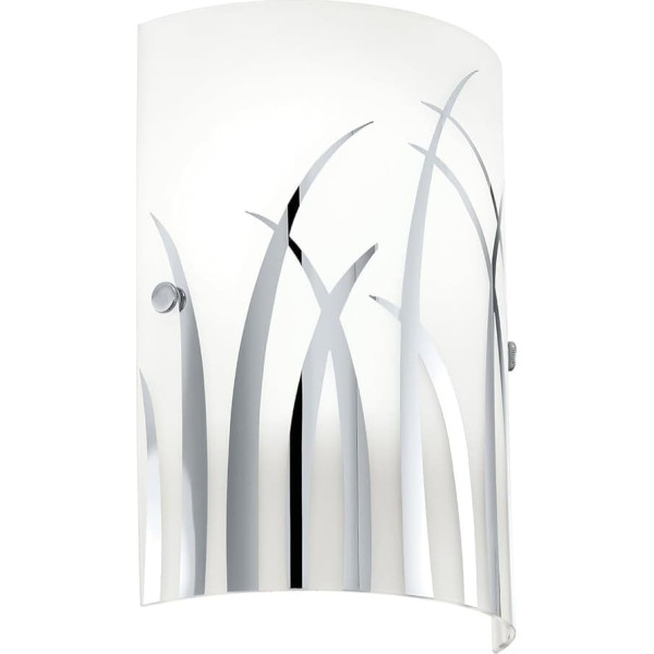The steel wall light in chrome with a decorative lampshade made of lacquered glass in white and a chrome grass decor blends elegantly into the modern trend With its special design, the wall lamp offers a highlight in any room - whether in the kitchen, living room, dining room, hallway or bedroom No bulb included; the bulbs shown are sold separately under EGLO 110043 Suitable for any bulb with E14 socket, maximum 42 watts per socket; dimmable depending on the bulb used Dimensions: length: 18 cm, height: 25 cm, projection: 8 cm › See more product details