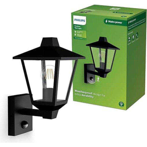 WEATHER RESISTANT DESIGN: Resistant to rust and corrosion caused by heavy rain, extreme temperatures, direct sunlight and UV radiation. The IP44 rating provides resistance to splashes of water and moisture. High-quality materials: Like all Philips products, our outdoor lights are designed to last. This light is made of high quality die-cast aluminium and has an excellent surface treatment for maximum durability. PERSONALIZE YOUR LIGHT: This light comes without bulbs, so you can decide for yourself which bulb best suits your taste and needs. With a Philips LED bulb, a high-quality and long-lasting light output is guaranteed. Built-in motion sensor: a motion sensor detects when you or your guests arrive and turns on the light automatically, which ensures more comfort and safety. › See more product details