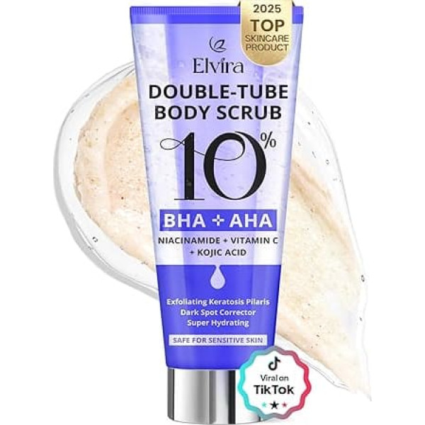 Elvira KP Bump Eraser Body Scrub, Exfoliating Body Scrub for Keratosis Pilaris, Smooth Skin with 10% AHA/BHA & Niacinamide, Moisturising and Brightening, Body Care Products, Deep Cleansing, 7 oz
