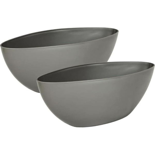 Set of 2 Oval Bowls - Weatherproof Planter - UV-Resistant Flower Pot - Plant Bowl - L 38 cm - Grey