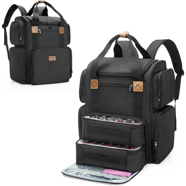 BAFASO Nail Polish Organiser for 70 Bottles of Nail Polish and Nail Lamp, black, Backpack