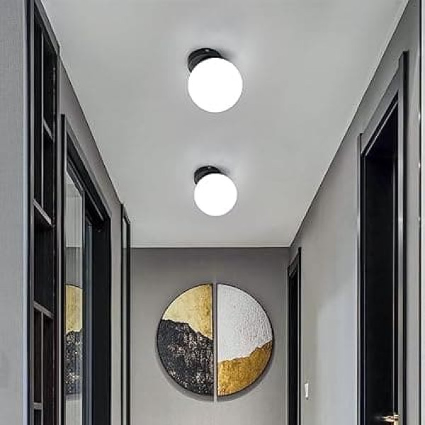 Delicate and stylish design: the wall light inside has a simple and beautiful look. The perfect combination of black lamp base and diameter of the ball lampshade gives your room a unique, modern and stylish atmosphere. High-quality material: frosted glass lampshade, soft and non-glare. Galvanised base, robust and durable, not easy to corrode and rust.