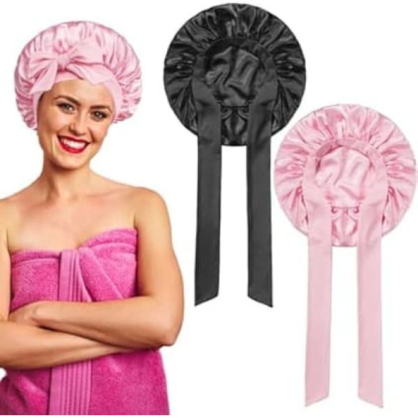 Seidenhaube zum Schlafen, Satin-Haarkappe für lockiges Haar – Rosa und Schwarz, verstellbare Nachthaube, schützt natürliches Haar vor Frizz, weiche und atmungsaktive Schlafkappe, 2 Stück