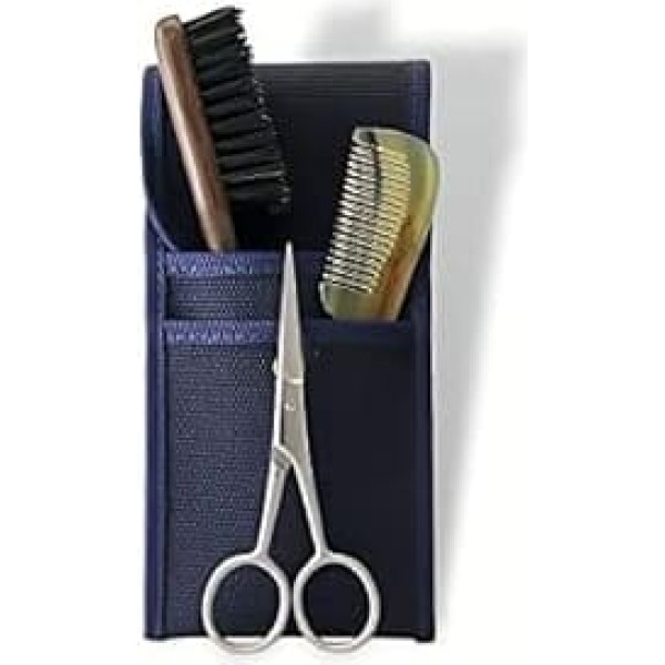 Plisson Complete Set Moustache/Beard 3 Piece Scissors Brush 100% Wild Boar Comb Horn