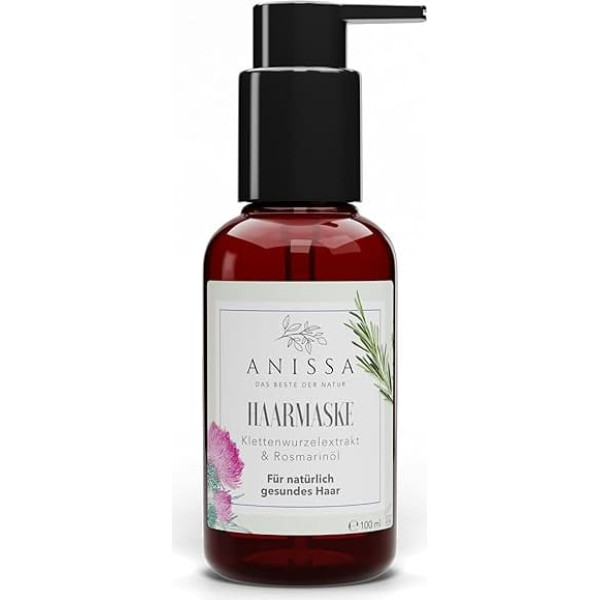 INTENSIVE PFLEGE: Hochwertige Haarmaske mit Jojoba- und Baobab-Öl für trockenes und strapaziertes Haar. FEUCHTIGKEITSVERSORGUNG: Sheabutter und Mangobutter spenden intensive Feuchtigkeit und sorgen für geschmeidiges, glänzendes Haar. HAARSTRUKTUR-STÄRKUNG: Panthenol und Klettenwurzelextrakt regenerieren die Haarstruktur und reduzieren Spliss. WACHSTUMSFÖRDERND: Rosmarinöl stimuliert die Kopfhautdurchblutung und unterstützt natürliches Haarwachstum. NATÜRLICHE INHALTSSTOFFE: Kombiniert pflegende Pflanzenöle mit nährender Sheabutter für gesundes, kräftiges Haar. › See more product details; Product description Product description Diese hochwertige Haarmaske von ANISSA Naturkosmetik ist die ideale Pflege für beanspruchtes und trockenes Haar. Die innovative Formel vereint die Kraft ausgewählter Pflanzenöle wie Jojoba und Baobab mit nährender Sheabutter und Mangobutter. Angereichert mit Panthenol und Klettenwurzelextrakt stärkt sie die Haarstruktur von innen heraus und sorgt für intensive Feuchtigkeit. Die Kombination aus Lavendel- und Rosmarinöl unterstützt die Kopfhautgesundheit und fördert natürliches Haarwachstum. Diese Maske macht selbst widerspenstiges Haar wieder geschmeidig und verleiht ihm einen gesunden Glanz. Die reichhaltige Textur dringt tief in die Haarfaser ein, reduziert Spliss und schützt vor Haarbruch. Für beste Ergebnisse regelmäßig nach der Haarwäsche anwenden. Safety Warning Nur zur externen Verwendung. Augenkontakt vermeiden. Von offenem Feuer und direkten Wärmequellen fernhalten.; Product description Product description Diese hochwertige Haarmaske von ANISSA Naturkosmetik ist die ideale Pflege für beanspruchtes und trockenes Haar. Die innovative Formel vereint die Kraft ausgewählter Pflanzenöle wie Jojoba und Baobab mit nährender Sheabutter und Mangobutter. Angereichert mit Panthenol und Klettenwurzelextrakt stärkt sie die Haarstruktur von innen heraus und sorgt für intensive Feuchtigkeit. Die Kombination aus Lavendel- und Rosmarinöl unterstützt die Kopfhautgesundheit und fördert natürliches Haarwachstum. Diese Maske macht selbst widerspenstiges Haar wieder geschmeidig und verleiht ihm einen gesunden Glanz. Die reichhaltige Textur dringt tief in die Haarfaser ein, reduziert Spliss und schützt vor Haarbruch. Für beste Ergebnisse regelmäßig nach der Haarwäsche anwenden. Safety Warning Nur zur externen Verwendung. Augenkontakt vermeiden. Von offenem Feuer und direkten Wärmequellen fernhalten.; Product description Diese hochwertige Haarmaske von ANISSA Naturkosmetik ist die ideale Pflege für beanspruchtes und trockenes Haar. Die innovative Formel vereint die Kraft ausgewählter Pflanzenöle wie Jojoba und Baobab mit nährender Sheabutter und Mangobutter. Angereichert mit Panthenol und Klettenwurzelextrakt stärkt sie die Haarstruktur von innen heraus und sorgt für intensive Feuchtigkeit. Die Kombination aus Lavendel- und Rosmarinöl unterstützt die Kopfhautgesundheit und fördert natürliches Haarwachstum. Diese Maske macht selbst widerspenstiges Haar wieder geschmeidig und verleiht ihm einen gesunden Glanz. Die reichhaltige Textur dringt tief in die Haarfaser ein, reduziert Spliss und schützt vor Haarbruch. Für beste Ergebnisse regelmäßig nach der Haarwäsche anwenden. Safety Warning Nur zur externen Verwendung. Augenkontakt vermeiden. Von offenem Feuer und direkten Wärmequellen fernhalten.