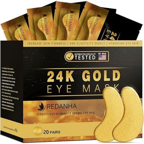 Puffy eyes and improved dark circles: The mask under the eyes is a very effective method of care for the eye skin, which can improve local edema, eliminate small bags under the eyes, quickly combat skin aging, smooth wrinkles and fine lines, soften dark circles and accelerate cell and collagen regeneration. [Anti-ageing effect]: REDANHA eye patches under the eyes with collagen as an anti-aging component prevent the formation of wrinkles and the 24 carat nano gold with protective effect helps prevent sagging of the skin. Moisturising and moisturising: The hyaluronic acid patches under the eyes moisturise and moisturise the skin and ensure a long-lasting effect. You will find that your skin is as hydrated and younger than ever. However, the wearing time should not be too long so as not to moisturise the skin of the eyes. Easy to use: Clean your face and eyes with warm water to better absorb the nutrients of the eye patch. Place the patch under your eyes and gently press it to remove the air bubbles. Hold it for 20 minutes, then remove the bandage and tap gently to remove the remaining serum. Choose whether you want to rinse the residual serum depending on the situation. Safe and effective ingredients: Contains collagen, hyaluronic acid and a variety of natural plant extracts that can moisturise the skin around the eyes, relieve fatigue and protect the eye skin. Its collagen can prevent the formation of wrinkles and protect the skin from flabbiness without side effects. › See more product details; Product description This eye mask is easy to use at any time, can effectively reduce eye fatigue and fine lines and soften the skin. Package dimensions: 4.72 x 3.7 x 3.35 inches 13.76 ounces. Size: as shown in the picture. Color: as picture show Instructions for use: it is recommended to use 3-4 times a week for 10 to 15 minutes. Warm Tips Put them in the refrigerator to keep them soft, but never freeze them. These eye masks are not reusable. Under normal circumstances, the eye mask should be used immediately after opening, otherwise it may deteriorate.; Product description This eye mask is easy to use at any time, can effectively reduce eye fatigue and fine lines and soften the skin. Package dimensions: 4.72 x 3.7 x 3.35 inches 13.76 ounces. Size: as shown in the picture. Color: as picture show Instructions for use: it is recommended to use 3-4 times a week for 10 to 15 minutes. Warm Tips Put them in the refrigerator to keep them soft, but never freeze them. These eye masks are not reusable. Under normal circumstances, the eye mask should be used immediately after opening, otherwise it may deteriorate.; This eye mask is easy to use at any time, can effectively reduce eye fatigue and fine lines and soften the skin. Package dimensions: 4.72 x 3.7 x 3.35 inches 13.76 ounces. Size: as shown in the picture. Color: as picture show Instructions for use: it is recommended to use 3-4 times a week for 10 to 15 minutes. Warm Tips Put them in the refrigerator to keep them soft, but never freeze them. These eye masks are not reusable. Under normal circumstances, the eye mask should be used immediately after opening, otherwise it may deteriorate.
