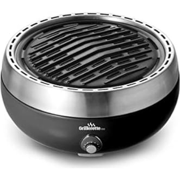 A BETTER PORTABLE GRILL The Grillerette Pro is a lightweight, portable, battery powered charcoal grill that's perfect for any occasion 90% less smoke: Innovative grill plate design blocks the spilling of fat on the charcoal, which creates a 90% reduction in smoke AUTHENTIC CHARCOAL FLAVOR - Your food will be enhanced with a touch of smokiness and authentic charcoal flavor! PORTABLE The Grillerette Pro comes with a carry bag and weighs less than 8 pounds Fan controlled: battery powered fan will light charcoal faster and keep it hot for as long as you need it › See more product details; Product description Grillerette Pro - The smartest charcoal grill! A BETTER PORTABLE GRILL The battery powered fan makes charcoal light faster and keeps it hot for as long as you need it. With the speed control on the fan, you can set your own temperature up to 450 degrees, with only 4 AA batteries (not included). Perfect for any occasion: patio cooking, tailgating, on the beach and anywhere with friends and family. 90% less smoke: Innovative grill plate design blocks the spilling of fat on the charcoal, which creates a 90% reduction in smoke. This unique design makes the Grillerette Pro extremely versatile and allows you to grill anywhere, even on your patio! EXCEPTIONAL TASTE: As the Grillerette Pro is a charcoal based cooking grate, the food is enhanced with a touch of smokiness and authentic charcoal flavour! Gets hotter than other portable grills at up to 450 degrees for better temperature control of your grill, allowing you to cook more meats and vegetables with better consistency and flavor. CONVENIENT & SIMPLE Perfect for any occasion: patio cooking, tailgating, on the beach and anywhere with friends and family. Comes with an ultra-practical, lightweight portable travel bag. BBQ and travel bag is extremely portable, weighs under 7 lbs. Cleaning is a breeze, simply empty used charcoal (once cooled) and simply wipe the canister and grill plate...done! VERSATILITY The griddle is great for meat, fish, vegetables etc. Get creative with what you grill on your own barbecue set! You can use normal charcoal and lighter fluid with the grill or try lighter gel to achieve a truly smokeless experience! Optional accessory set available that includes everything you need: a pastry brush, tongs, a separate grill for indirect grilling and a lid with temperature monitoring! TableTop Chefs; Product description Grillerette Pro - The smartest charcoal grill! A BETTER PORTABLE GRILL The battery powered fan makes charcoal light faster and keeps it hot for as long as you need it. With the speed control on the fan, you can set your own temperature up to 450 degrees, with only 4 AA batteries (not included). Perfect for any occasion: patio cooking, tailgating, on the beach and anywhere with friends and family. 90% less smoke: Innovative grill plate design blocks the spilling of fat on the charcoal, which creates a 90% reduction in smoke. This unique design makes the Grillerette Pro extremely versatile and allows you to grill anywhere, even on your patio! EXCEPTIONAL TASTE: As the Grillerette Pro is a charcoal based cooking grate, the food is enhanced with a touch of smokiness and authentic charcoal flavour! Gets hotter than other portable grills at up to 450 degrees for better temperature control of your grill, allowing you to cook more meats and vegetables with better consistency and flavor. CONVENIENT & SIMPLE Perfect for any occasion: patio cooking, tailgating, on the beach and anywhere with friends and family. Comes with an ultra-practical, lightweight portable travel bag. BBQ and travel bag is extremely portable, weighs under 7 lbs. Cleaning is a breeze, simply empty used charcoal (once cooled) and simply wipe the canister and grill plate...done! VERSATILITY The griddle is great for meat, fish, vegetables etc. Get creative with what you grill on your own barbecue set! You can use normal charcoal and lighter fluid with the grill or try lighter gel to achieve a truly smokeless experience! Optional accessory set available that includes everything you need: a pastry brush, tongs, a separate grill for indirect grilling and a lid with temperature monitoring! TableTop Chefs; Grillerette Pro - The smartest charcoal grill! A BETTER PORTABLE GRILL The battery powered fan makes charcoal light faster and keeps it hot for as long as you need it. With the speed control on the fan, you can set your own temperature up to 450 degrees, with only 4 AA batteries (not included). Perfect for any occasion: patio cooking, tailgating, on the beach and anywhere with friends and family. 90% less smoke: Innovative grill plate design blocks the spilling of fat on the charcoal, which creates a 90% reduction in smoke. This unique design makes the Grillerette Pro extremely versatile and allows you to grill anywhere, even on your patio! EXCEPTIONAL TASTE: As the Grillerette Pro is a charcoal based cooking grate, the food is enhanced with a touch of smokiness and authentic charcoal flavour! Gets hotter than other portable grills at up to 450 degrees for better temperature control of your grill, allowing you to cook more meats and vegetables with better consistency and flavor. CONVENIENT & SIMPLE Perfect for any occasion: patio cooking, tailgating, on the beach and anywhere with friends and family. Comes with an ultra-practical, lightweight portable travel bag. BBQ and travel bag is extremely portable, weighs under 7 lbs. Cleaning is a breeze, simply empty used charcoal (once cooled) and simply wipe the canister and grill plate...done! VERSATILITY The griddle is great for meat, fish, vegetables etc. Get creative with what you grill on your own barbecue set! You can use normal charcoal and lighter fluid with the grill or try lighter gel to achieve a truly smokeless experience! Optional accessory set available that includes everything you need: a pastry brush, tongs, a separate grill for indirect grilling and a lid with temperature monitoring! TableTop Che