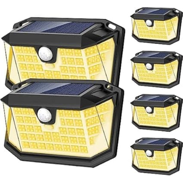 Latest Version Solar Lights Upgrade your outdoor lighting with our solar lights. With 188 powerful LED beads and a 270° wide angle design, they deliver up to 800lm bright illumination that covers large areas with ease. Enjoy a far brighter and more efficient lighting experience compared to other LED solar lights on the market. High Efficiency Solar Panel: Our solar garden lights have highly efficient solar panels with a conversion rate of up to 22%, which ensures faster charging compared to other solar lights. Equipped with a 1200 mA safety battery, it only needs 6-8 hours of sunlight to fully charge and can provide 8-12 hours of lighting at night. Intelligent PIR Motion Sensor Enjoy reliable outdoor security lighting with our precise PIR motion sensor light. It has a sensitive PIR motion sensor that can detect movement at a distance of up to 10-17 feet and covers an angle of 120°. When activated, the light illuminates a large area without scaring your pets. 3 Modes Our solar powered lights provide 3 modes: 1) Always On mode for automatic dusk to dawn, 2) Dimming light sensor mode that activates in low light conditions and brightens when motion is detected, and 3) Strong light sensor mode that turns on the brightest setting when motion is detected and turns off after 25 seconds without movement. IP65 waterproof: Our solar lights for outdoor use are built with high-quality and durable ABS materials, making them heat-resistant, frost-resistant and rustproof. With a waterproof protection class IP65, they can withstand all kinds of weather conditions, including rainy winter days. So you don't have to worry about problems even in less sunny conditions in the UK. EASY INSTALLATION Our solar PIR security lights are easy to install without wires, making them an environmentally friendly option. You can either mount them with the included 3M tape or screws. Ideal for outdoor areas such as walls, gardens, patios, yards, decks, garages, driveways, porches and fences. Simply install at a height of 6.5-8 ft for optimal performance. › See more product details