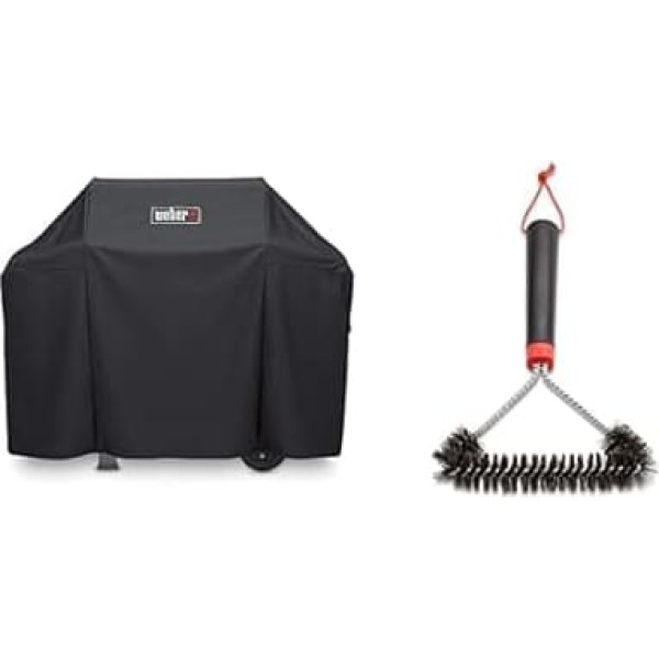 Weber 7183 Premium Case for Spirit/Spirit II 300 Series and Spirit 200 Series, Black & Three-Sided Grill Brush, Three-Sided Grill Brush, 30 cm, Black/Silver, 6277
