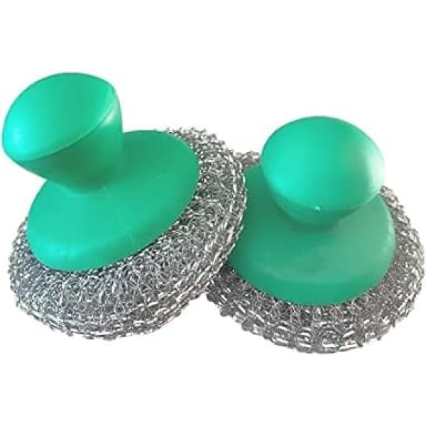 2 Pack Scouring Pad with Stainless Steel Wire with Handle - Deep Cleaning of Grill, Plancha, BBQ, Stainless Steel or Glass Tableware