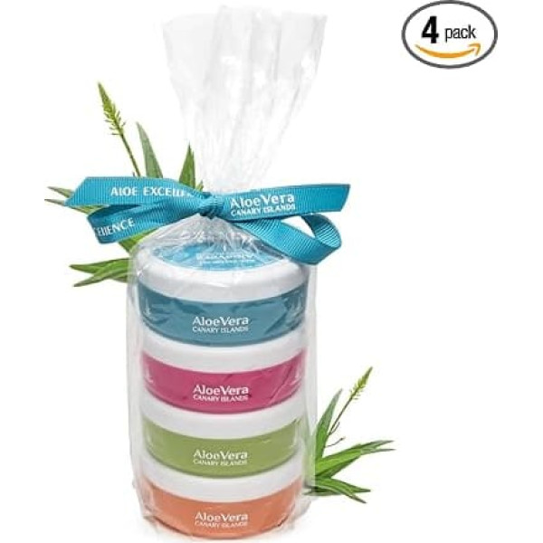 Pack of aloe vera creams - creams for face and body with gel texture and comfortable grip. 100% natural, without harmful ingredients for the skin. Includes: aloe vera cream, aloe vera cream with argan oil, aloe vera cream with rose hip oil and aloe vera cream with olive oil. Applications – thanks to the aloe vera creams, you can give your skin everything it needs. It contains a revitalising, moisturising, nourishing and a regenerating cream. In addition to the multiple properties and benefits of aloe vera combined with argan oil, olive oil and rosehip oil. Made in the Canary Islands – Aloe Vera is grown in the special climate and in the high humidity of the Canary Islands, ideal conditions for this plant. In addition, all Aloe Excellence creams are made with advanced ecological techniques to preserve all the natural properties of aloe vera. Format: 4 pieces of 50 ml cream › See more product details; Product description Pack consisting of aloe vera creams; Product description Pack consisting of aloe vera creams; Pack consisting of aloe vera creams