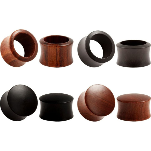 KUBOOZ (4 Pairs) Natural Sandalwood Ebony Ear Plugs Tunnel Gauges Stretcher Frame Piercings