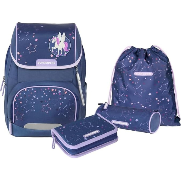 Stylish school bag set consisting of school backpack, pencil case and pencil case, with a light stick and interchangeable Velcro patch, practical set in purple School bag with spacious main compartment, large front pocket for the lunch box and side pocket for the water bottle High wearing comfort and even weight distribution, breathable 3D AirMesh back padding, ergonomically shaped shoulder straps and height-adjustable chest strap Durable, durable, sustainable - resistant polyester blend made from >70% recycled materials, easy to clean, water-repellent Versatile and lightweight - Weight approx. 1.2 kg, ideal companion for everyday school and office life, on trips, travel, hiking and sports › See more product details; Product description Product Description With Ergojet Galactica into everyday school life - to be well equipped, the 6-piece school bag set consists of: a Schneiders Ergojet school bag, a pencil case, a pencil case, a pencil case, a gym bag, a replaceable patch and a light stick. Convertible school bag set in coordinated design, from our Ergojet school bag collection. Thanks to the removable flap and the removable waist belt, the school bag becomes a school backpack in no time at all. A great and ergonomic complete package for any school child. The practical school satchel has a main compartment with padded laptop compartment and padded iPad compartment (max. 15 inches) and a front pocket with organiser. The reflective elements not only look cool, but also ensure visibility on the way to school and in traffic. The breathable 3D AirMesh back padding, the ergonomically shaped shoulder straps and the height-adjustable chest strap guarantee high wearing comfort and an even weight distribution. With a size of approx. 29 x 40 x 20 cm, the backpack holds approx. 21 litres. The sustainable backpack is made from over 70% recycled materials. Ergojet Galactica school bag features: school bag and school backpack in one, removable lid attached with zip, breathable back padding (3D AirMesh) for optimal air circulation on the back, ergonomically shaped shoulder straps, special padding to relieve the spine, length adjustment straps for optimal fit in the shoulder area, height-adjustable chest strap, removable waist belt for optimal weight distribution, interchangeable patches with 3D effect, safety-tested LED system, VV. bag for the LunCH Box, side pocket for the water bottle, reflective elements, lid closes with magnetic closure. Brand Description Das Markenzeichen des traditionsreichen Familienunternehmens Schneiders Vienna ist das fundierte Know-How. Schneiders Schultaschen und Walker Schulrucksäcke entstehen in einem intensiven produktiven Prozess, an dem mehrere kreative und fachkundige Mitarbeiter beteiligt sind. Die Berücksichtigung technischer Innovationen, der Einsatz von hochwertigen Materialien in modischen Designs und die gute Verarbeitung garantieren die besondere Schneiders Qualität.; Product description Product Description With Ergojet Galactica into everyday school life - to be well equipped, the 6-piece school bag set consists of: a Schneiders Ergojet school bag, a pencil case, a pencil case, a pencil case, a gym bag, a replaceable patch and a light stick. Convertible school bag set in coordinated design, from our Ergojet school bag collection. Thanks to the removable flap and the removable waist belt, the school bag becomes a school backpack in no time at all. A great and ergonomic complete package for any school child. The practical school satchel has a main compartment with padded laptop compartment and padded iPad compartment (max. 15 inches) and a front pocket with organiser. The reflective elements not only look cool, but also ensure visibility on the way to school and in traffic. The breathable 3D AirMesh back padding, the ergonomically shaped shoulder straps and the height-adjustable chest strap guarantee high wearing comfort and an even weight distribution. With a size of approx. 29 x 40 x 20 cm, the backpack holds approx. 21 litres. The sustainable backpack is made from over 70% recycled materials. Ergojet Galactica school bag features: school bag and school backpack in one, removable lid attached with zip, breathable back padding (3D AirMesh) for optimal air circulation on the back, ergonomically shaped shoulder straps, special padding to relieve the spine, length adjustment straps for optimal fit in the shoulder area, height-adjustable chest strap, removable waist belt for optimal weight distribution, interchangeable patches with 3D effect, safety-tested LED system, VV. bag for the LunCH Box, side pocket for the water bottle, reflective elements, lid closes with magnetic closure. Brand Description Das Markenzeichen des traditionsreichen Familienunternehmens Schneiders Vienna ist das fundierte Know-How. Schneiders Schultaschen und Walker Schulrucksäcke entstehen in einem intensiven produktiven Prozess, an dem mehrere kreative und fachkundige Mitarbeiter beteiligt sind. Die Berücksichtigung technischer Innovationen, der Einsatz von hochwertigen Materialien in modischen Designs und die gute Verarbeitung garantieren die besondere Schneiders Qualität.; Product Description With Ergojet Galactica into everyday school life - to be well equipped, the 6-piece school bag set consists of: a Schneiders Ergojet school bag, a pencil case, a pencil case, a pencil case, a gym bag, a replaceable patch and a light stick. Convertible school bag set in coordinated design, from our Ergojet school bag collection. Thanks to the removable flap and the removable waist belt, the school bag becomes a school backpack in no time at all. A great and ergonomic complete package for any school child. The practical school satchel has a main compartment with padded laptop compartment and padded iPad compartment (max. 15 inches) and a front pocket with organiser. The reflective elements not only look cool, but also ensure visibility on the way to school and in traffic. The breathable 3D AirM