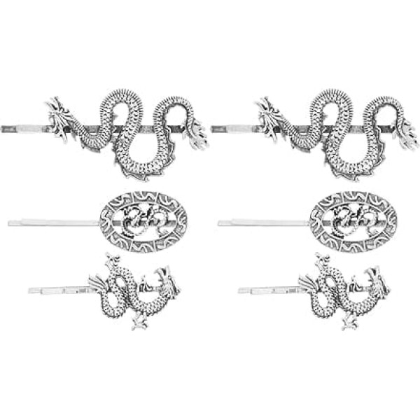 Healeved Pack of 12 Punk Headdress Hair Accessories, Dragon Hair Clips, Vintage Silver Hair Pins, Retro Metal Hair Clips, Chinese Vintage Hair Sticks, Hair Accessories for Women, Women's Hair Stick
