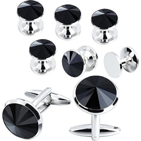 HAWSON Mens Black Stone Cuff links and Shirt Stud Set Tuxedo Accessories Wedding Business