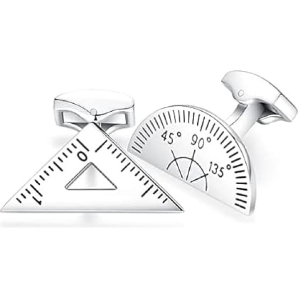 HONEY BEAR Maths Protractor Ruler Cufflinks for Men, Shirt, Triangle, Stainless Steel, Wedding Gift, Silver, Reusable, silver