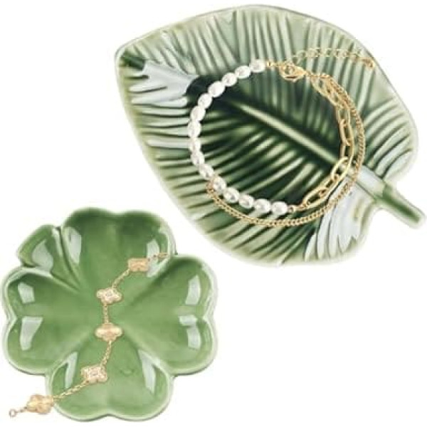 FENGQQKJ Jewellery Tray, Ceramic Jewellery Bowl, Small Decorative Jewellery Bowl, Ring Holder, Ceramic Jewellery Plate, Aesthetic Room Decor, Leaf Shapes for Dressing Table, Bathroom, Pack of 2