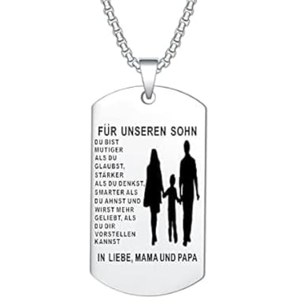 YOTHIWAD Necklace for My Son, Dog Tag Chain “An Meinen Sohn”, Necklace with Engraving, Inspirational Text Gift for Son from Mum and Dad