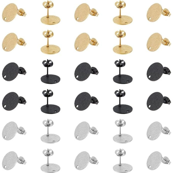 UNICRAFTALE 30 Pieces 3 Colours Flat Round Stud Earrings Jewellery Making Stainless Steel Stud Earrings with Earring Clasps Textured Stud Earrings with Hole for Making DIY Earrings