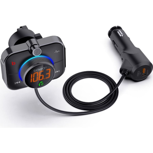 tr-14 auto fm raidītājs ar bluetooth un lādētāju, ātrā uzlāde 3.0 un enerģijas piegāde, sarkans troksnis.