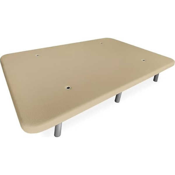 Padded base made of reinforced steel tube with cross braces for reinforcement, an extra hard and stable chipboard is supported on this structure Padded with breathable 3D mesh, with non-slip properties to prevent the mattress from slipping and promotes ventilation of the mattress, along with the 4 ventilation valves IMPORTANT: This padded base comes in a package, the legs are included in the package, which is additionally reinforced to avoid damage during transport. The 6 legs included are made of metal, cylindrical with a height of 27 cm, can be easily attached to the padded base by thread, with plastic plugs to protect the floor from scratches The padded base requires no assembly or tools. Simply screw on the included legs Suitable for any type of mattress. Trusted product, sustainably made in Spain, to the highest quality standards › See more product details