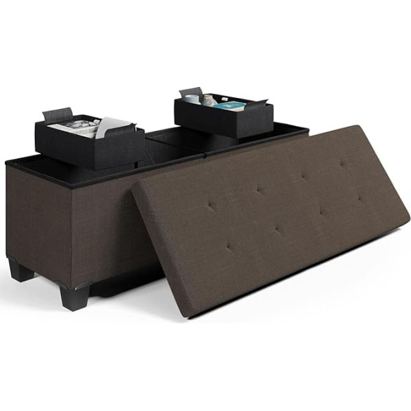 Storagebud Ottoman Bench with Storage Containers, 43 Inch Storage Bench for Bedroom Bed End Large Ottoman Footrest, Brown Ottoman with Storage for Living Room, Bench with Storage Space, Max 300 kg