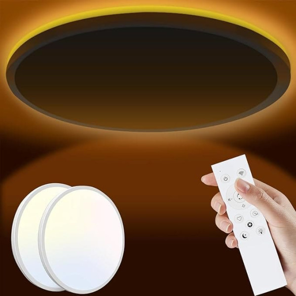 Pack of 2 LED Ceiling Light with Remote Control, 24 W, 3000 K - 6000 K, Dimmable, Waterproof Ceiling Light for Bathroom, Hall, Bedroom, Game Room [Energy Class A] [Energy Class A]