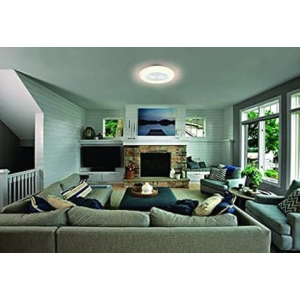 Stylish and modern – with an attractive and functional design, the ceiling fan offers excellent lighting for the interior, with the ceiling fan ceiling fan always a fresh wind blows. Smart control – light can be controlled via app or Amazon Alexa, Google and Co. Compatible with all voice assistants. Activating light and control relaxing light in the evening from the comfort of the sofa. Seamless design – a perfect transition between lamp and fan. The slim design is discreet and effective. This product is a surrounding product. Surrounding products are lights that can be disassembled for separate verification of the included light source(s). This product contains a light source of energy efficiency class E › See more product details