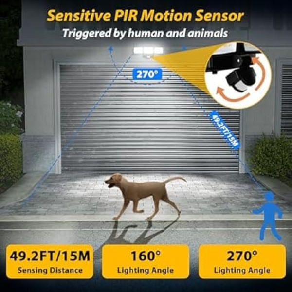 High bright security lights with motion sensor: these battery operated outdoor lights use high-quality LED beads and the output brightness reaches 1500 lm. They can effectively illuminate outdoor and indoor areas and create bright light effects. Illuminate your entire garden, driveway, porch, terrace, entrance, etc Highly sensitive pir motion sensor: with adjustable pir and three rotating light heads, the detection range can reach 49.2 feet/15 m and the detection angle is 160°, which provides a wider light coverage to light up anywhere you need light Better energy efficiency: when your motion is detected, the outdoor motion sensor lights automatically turn on at night to light up for 20 seconds. The wireless floodlights can be used for 6 months with 10 triggers per day and are only activated in darkness, so no electricity is wasted during the day IP65 waterproof battery operated: outdoor sensor light is IP65 certified and is made of high-quality materials that can normally be used in different seasons and in different weather conditions such as rain, sleet or snow. It is the perfect lighting solution for outdoor use, indoors, garages, porches, backyards, driveways, walkways, stairs, houses, etc Battery operated outdoor and indoor lights: battery operated with 3 x D batteries (not included), can be easily installed anywhere, even without a mains socket or sunlight. Simply attach it to the wall or other surfaces with the matching screws. It can be used in many ways indoors and outdoors › See more product details