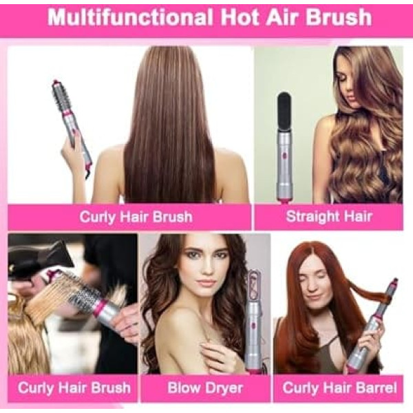 Airstyler 5-in-1 Hot Air Brush Set, Multi-Hair Styler, Styling Brushes with Hair Dryer, Warm Air Brush, Round Brush, Hair Dryer Brush, Automatic Curler, for Drying, Volumising, Straightening