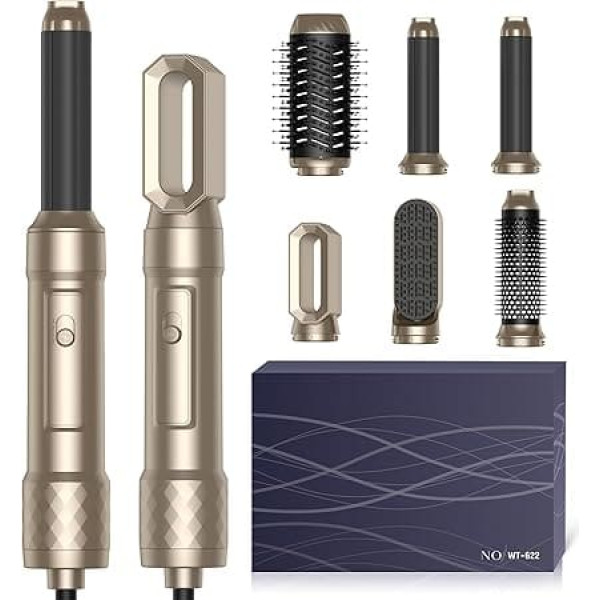 6 in 1 hair styler: the airstyler is a multifunctional styling set that can perfectly meet your different styling needs. The 6-in-1 hair dryer includes 1 hair dryer, 2 curling irons automatically in different directions, 1 hair dryer brush round brush, 1 straightening brush, 1 hot air brush, can be used as a hair dryer, curling iron, hair straightener and streamlines the creation of different styles for different hair lengths, perfect for home and on the go Ion technology for hair care: the hair dryer has continuous negative ion technology. Millions of negative ions neutralise electrical charges and effectively reduce static charge and effectively reduce frizz, enhance shine and add volume while making hair smoother. This 6-in-1 hair styler allows you to wrap your hair around the warm air brush and automatic curling iron to create soft, natural curls while protecting your hair from heat damage Temperature and air speed control: this 6 in 1 hairstyler has 3 temperature levels (low - medium - high), which can be adjusted by pressing the corresponding buttons one by one. The low temperature is ideal for dry/fine hair or for use in summer. Medium temperature for semi-dry/normal hair and daily styling. The high temperature is suitable for damp, thick and curly hair and ensures quick blow-drying, especially in winter. You can choose different temperatures depending on the hair type and styling needs. Ideal gift: this 6-in-1 hair styler combines an ion hair dryer with a multifunctional hot air brush that allows you to create stylish looks for all hair lengths. With the replaceable warm air brush, you can adjust your hairstyle for any occasion, whether for everyday life, a business trip or a holiday. This compact and portable hot brush is the perfect all-in-one styling solution. In addition, the exquisite packaging is suitable as a gift for friends, family or other loved ones Attention: the longer you use the hot air brush, the hotter the hairstyler will be. Please wear gloves when using or replacing the hot air brush to avoid burns. In the first minutes of use, you can notice a slight smell that is completely normal and disappears quickly. If you have any questions about the product, please do not hesitate to contact us › See more product details