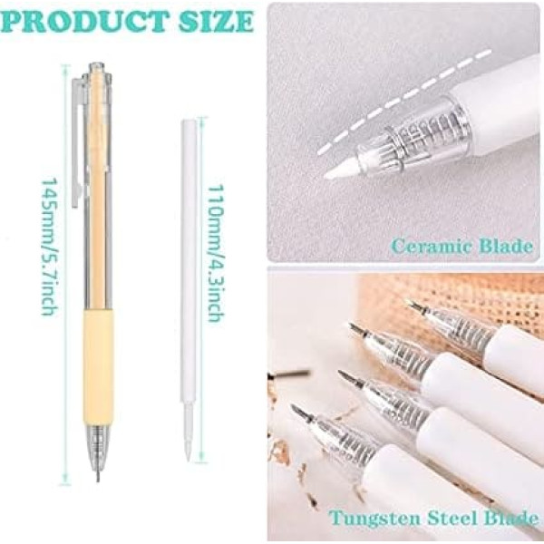 Premium gifts: you will receive 6 pieces utility knife pen in light blue, dark blue, green, yellow, pink and white. Size: 14.5 cm / 5.7 inches. Materials: the paper cutting pen is made of ABS plastic, blade material: ceramic, tungsten steel. EASY TO USE Designed with the portable push pen, extendable and safe.it is just like ordinate pen, which can be stored in pen case, handbag or your package. Good Experience It can help you cut the complex shape conveniently and quickly and enjoy your DIY cutting process. Wide application: suitable for paper cutting, cards, felt, ribbon, crafts, etc.(Suitable for paper products, not for hard surfaces such as wood) › See more product details