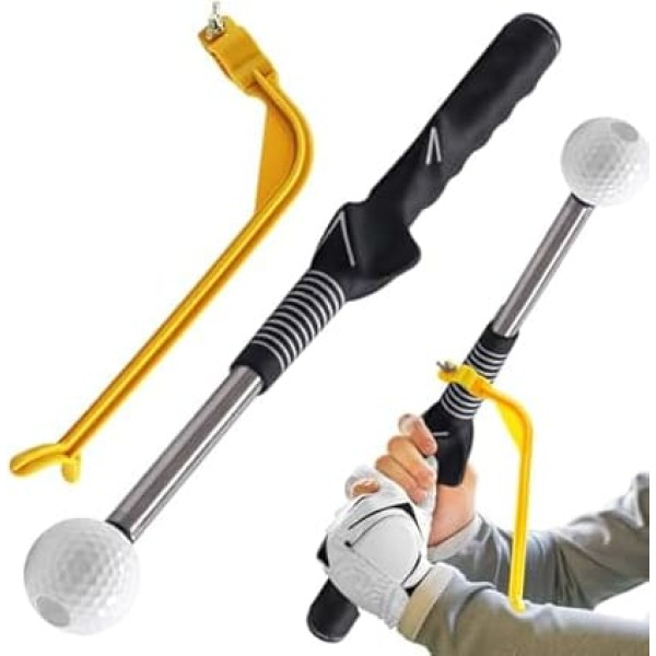 Improve swing technique: golf swing trainers help to develop correct swing position, avoid strong, exaggerated swings, weak slices, inaccurate strokes. Golf swing training device provides instructions, support, to improve swing technique. Enjoy more even strokes with golf swing trainer. Retractable golf swing training aid ideal for special occasions, complements other olf training equipment, aids. Golf training device is the best choice for golf enthusiasts High-quality golf swing trainer: retractable golf swing training device made of stainless steel, club golf swing trainer does not break easily, adjustable golf grip trainer golf swing trainer manual deformation resistant, handle part consists of a modern resin head, a non-slip grip trainer wrist trainer made of natural rubber, non-slip design ensures stability during high-intensity training, ergonomic design golf swing training. Safe experience Easy to use: telescopic golf swing before the swing, it is in the retracted state, then snaps when the sweet spot hits, swing correctly. After completing the swing, it is automatically retracted. Golf swing trainer retractable golf swing training aid especially for golf beginners. Experience easy practice with tool-free installation. Golf swing trainer golf accessories men ready to use, so you can easily refine skills in any environment - home, office, golf course Retractable golf handle training aid: golf training handle with retractable, sound design ensures realistic swing feeling. Original size golf swing trainer is approx. 38.5 cm/15 inches, stretched length is approx. 66 cm/22 inches. When you swing down, the club is extended, makes a \