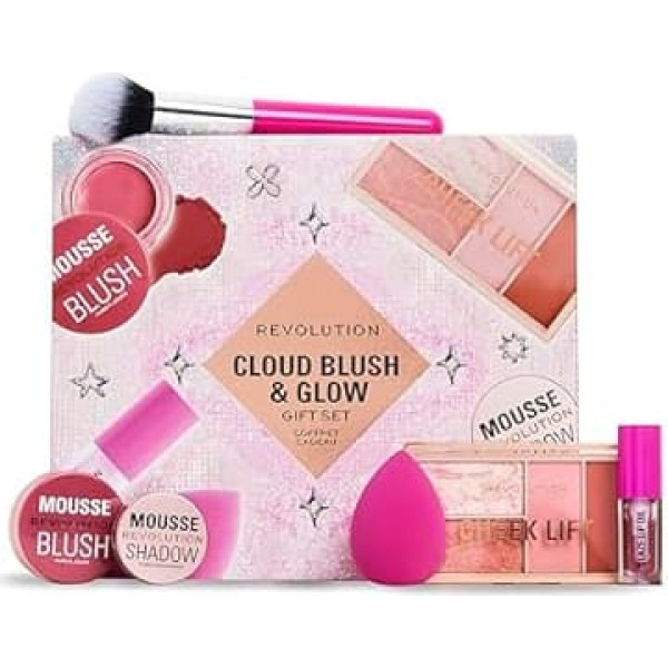 Revolution Beauty Cloud Blush & Glow Gift Set, 6-Piece Set with Eyeshadow, Blush & Nourishing Lip Oils, Vegan & Cruelty Free