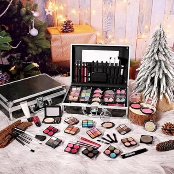 Makeup Kit for Teen Girls & Women Full Kit, Beauty Train Case with Starter Cosmetics Set, Make Up Valentine's Day Gift Box with Eyeshadow, Lip Gloss, Highlight, Blush, Lip & Eye Pen, Brush & More