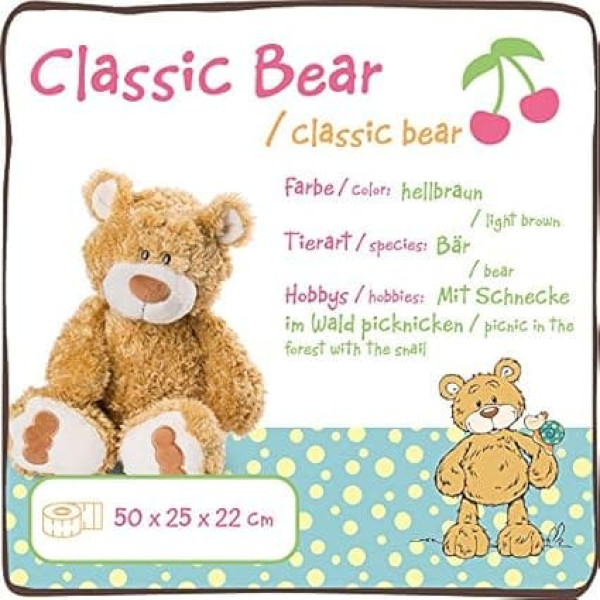 Cuddly soft: The super fluffy cuddly bear has super soft and extra long fur made of high-quality NICI plush, totally cute button eyes, a bright snub nose and great, embroidered bear paws. Cheerful: The plush bear is a playmate and cuddly partner in one. If you have the cute teddy with its friendly facial expression on the side, you can just have a good mood. Classic Bear: spring is here and the sweet, tan bear and his best friend, the snail, celebrate spring with a picnic in the woods. They enjoy many treats together and let it go well. Ideal gift for babies, children and cuddly toy fans: the ideal gift for birthdays, christenings or school enrolment. Also complement the whole Classic Bear collection of the NICI series. NICI Cuddly toys: NICI has been providing bright baby and children's eyes for over 30 years. NICI plush toys ensure cuddly happiness and put a smile on everyone's face. › See more product details