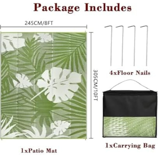 Homcomodar Outdoor Rug 245 x 305 cm UV-Resistant Camping Mat Reversible Mats Plastic Straw Rugs Recycled Patio Rug for BBQ Balcony Beach Deck (Grass Green)