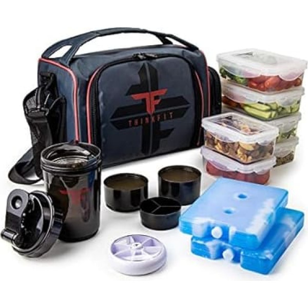 Best lunch box adult: ThinkFit cool boxes contain 6 meal prep containers, a pill dispenser, a shaker cup and 2 large ice packs. The lunch box is popular with men and women with active lifestyles and tight schedules. Cool bag small with 6 meal prep boxes: each portion container of the Thermo lunch box has a lid that closes tightly - for fresh food with great taste. The food prep boxes are BPA-free. Sizes: Small (355ml) and Medium (591ml) Lunch bag women and men with reusable, microwave and freezer safe food prep boxes: our lunch bag has containers that are dishwasher safe, microwave and freezer safe: the perfect lunch bag with Mealprep containers. Lunch Box Thermal with Double Insulation to Keep Food Hot or Cold: Our lunch bag has 3 meal prep boxes on each side. For breakfast, lunch, dinner and snacks. With 2 XL ice packs for cooler bag for cooling food. MEAL PREP BAG WITH LIFETIME WARRANTY Every thermal bag and meal prep container is covered by warranty. Any problems contact us for immediate assistance. A great small cooler bag for men and women with containers. › See more product details