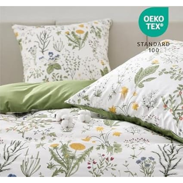 High-quality material: our 4-piece bed linen 135 x 200 cm (2 duvet covers + 2 pillowcases) is made from 100% natural cotton and thus pampers your skin with a soft. Pure cotton bedding is breathable and therefore ideal for wicking moisture away from the body. You can sleep particularly comfortably in the bed linen. FASHION DESIGN The green floral pattern bedding sets is characterized by an elegant and minimalist design, inspired by the refreshing atmosphere of spring. The design is simple but stylish and can be combined with most home styles. Thanks to the practical zips, the grey bed and cushion covers can be easily put on and taken off. With the bed linen, your duvet and pillow is protected from dirt and wear. 8 practical ribbons are sewn on the cotton bed linen to avoid the duvet slipping back and forth in the light grey cotton bed linen or always piling up on a corner. This ensures a carefree sleep at night. The Oeko-Tex Standard 100 certificate guarantees free from harmful substances. In addition, the 220 x 240 cm cotton 3-piece bed linen also scores points with easy-care properties - you can simply put your cotton bed linen in the washing machine and then tumble dry at low temperature. › See more product details