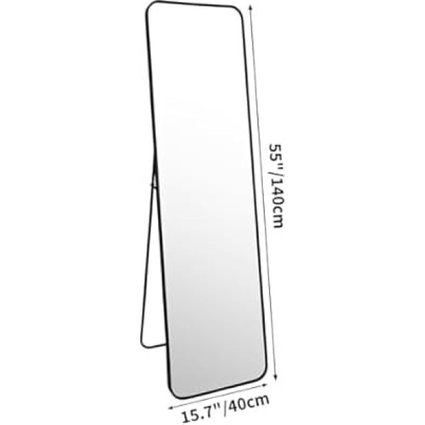 VERSATILE & PRACTICAL Our full body mirror measuring 55 x 15.7 inches and an elegant black aluminum frame can be flexibly used as a standing mirror or wall mirror to enhance your home SAFETY AND DURABILITY Thanks to the round corner design and high quality tempered glass, this mirror not only provides clear reflection, but also safety and durability for daily use STURDY AND RELIABLE The aluminum frame ensures stability, while the tempered glass ensures clear and undistorted images that accurately reflect every detail of your outfits CLARITY AND PRECISION Experience crisp images with this full body mirror that gives you a clear view of your outfit and helps you with daily dress choice ELEGANCE FOR YOUR HOME This full length mirror will add style and functionality to any room. Its timeless design blends harmoniously into your decor and ensures a clear view of your outfit › See more product details