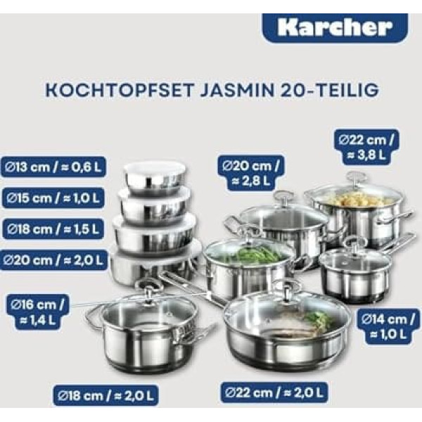 Karcher Jasmin 121008 20-Piece Cookware Set with Roasting Pot and 4 Bowls Stainless Steel for Induction