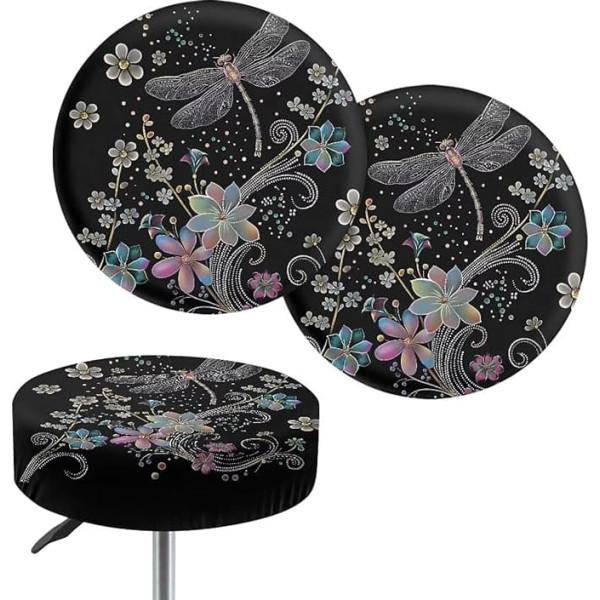 ‎Pcsjrkg PCSJRKG Libellen-Barhockerbezüge, Blumendruck, rund, Stuhlbezug, Barstuhlbezug, abnehmbar, waschbar, Stuhlbezüge für Esszimmer, Büro, Hotel, 2er-Set