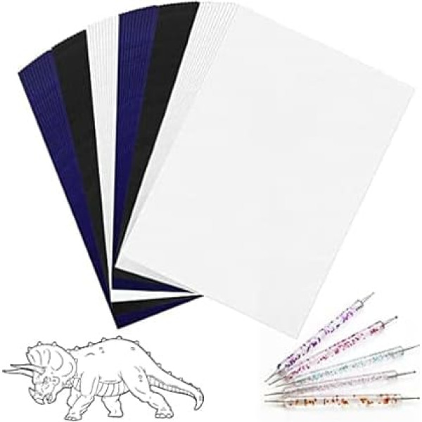 CARBON TRANSFER PAPER - You will receive 40 sheets of white transfer paper, 40 sheets of blue transfer paper, 40 sheets of transfer paper and 5 pieces pattern tracing pens. They are ideal for tracing pictures or words and make it easier to create designs Thin but strong: the quality of the transfer paper is good and not easy to break. All these papers can be easily used to transfer patterns or letters, the effect is perfect Erasable: transferred patterns and letters are easy to clean on smooth surfaces, but rough uneven surface takes a little time to erase The embossing pen has a total of 10 ball ends, 5 different diameters (1.0/1.5/2.0/2.5/3.0mm). Rounded tip protects the white graphite paper from cutting and tearing MULTI-PURPOSE - This carbon copy paper is perfect for arts and crafts projects, tracing, transferring drawings for paintings, wood burning, wood carving, sketching, watercolour transfer paper, transferring to wood, canvas and other creations etc › See more product details; Product description Transfer Paper Carbon Paper 11.7 x 8.3 Inch with 5 Stylus Pens for Wood Burning, Wood Carving, Trace Pattern, 120 Sheets; Product description Transfer Paper Carbon Paper 11.7 x 8.3 Inch with 5 Stylus Pens for Wood Burning, Wood Carving, Trace Pattern, 120 Sheets; Transfer Paper Carbon Paper 11.7 x 8.3 Inch with 5 Stylus Pens for Wood Burning, Wood Carving, Trace Pattern, 120 Sheets